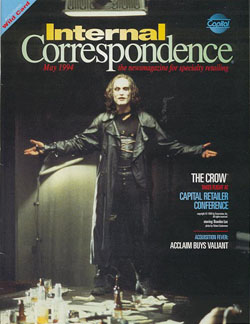 | Internal Correspondence, May, 1994. "The Crow Takes Flight At Capital Retailer Conference". This distributor magazine features an article on the premiere of The Crow movie at Capital's retailer conference that year. It also discusses the Crow comic and how the whole franchise pushed forward despite the untimely death of Brandon Lee. |