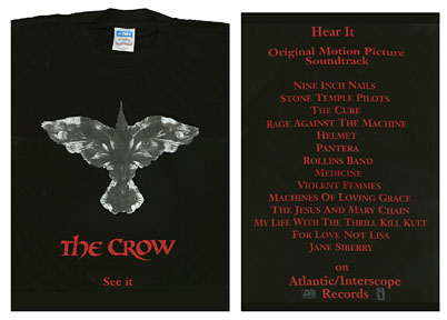 The Crow "See It, Hear It" advance promotional T-shirt, front and back.