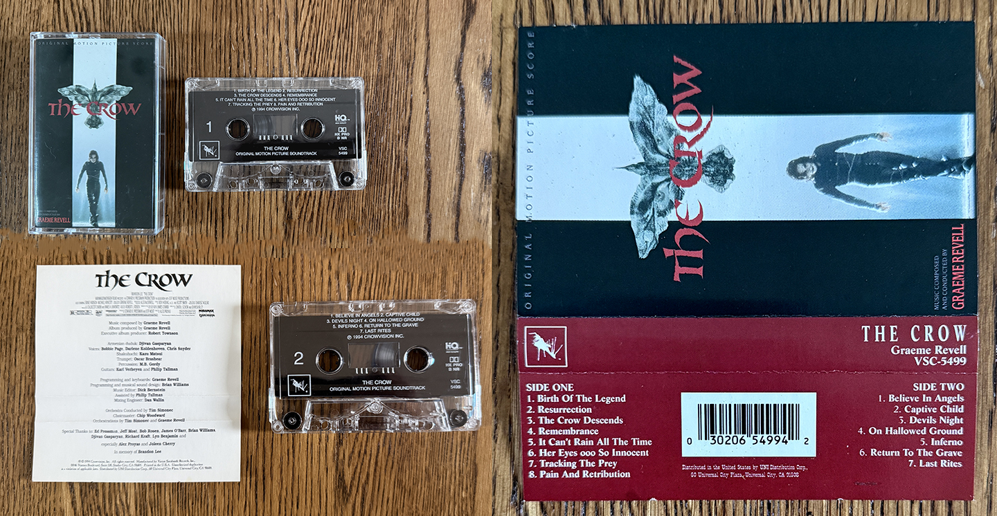 The Crow Original Motion Picture Score cassette, released by Graeme Revelle VSC-5499