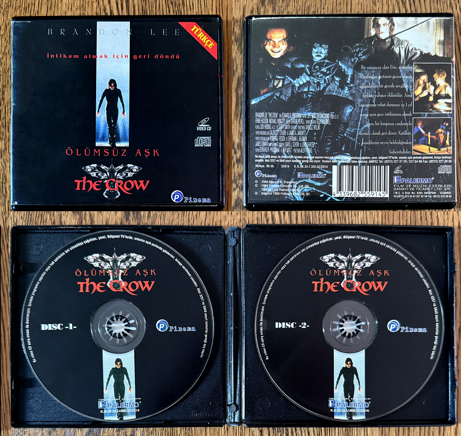 The Crow Video CD, extremely rare release from Turkey. The Turkish language movie is split across two discs. Released in 1999 by Palermo (Istanbul).