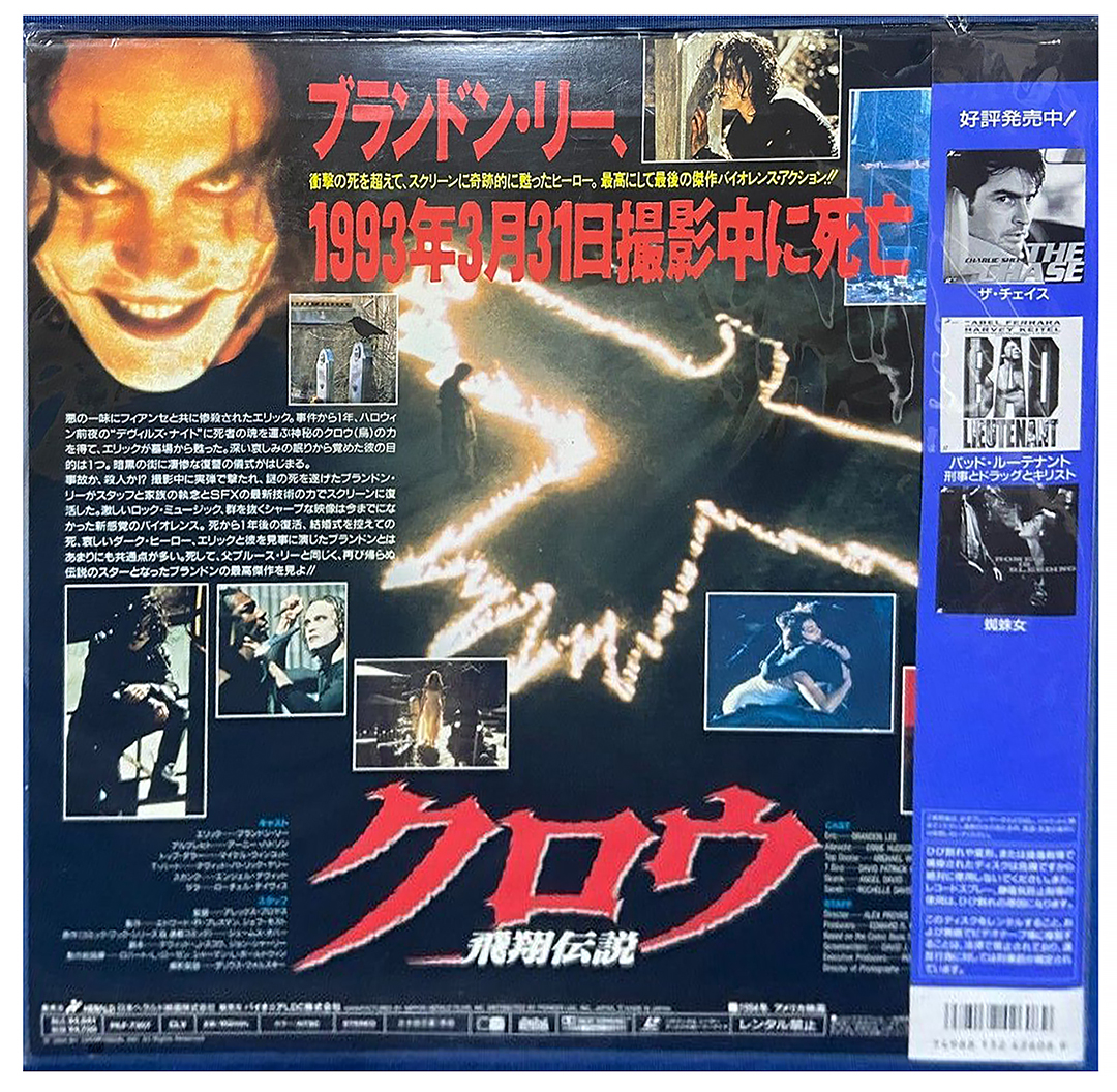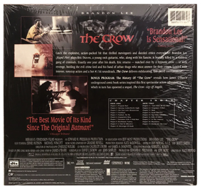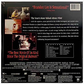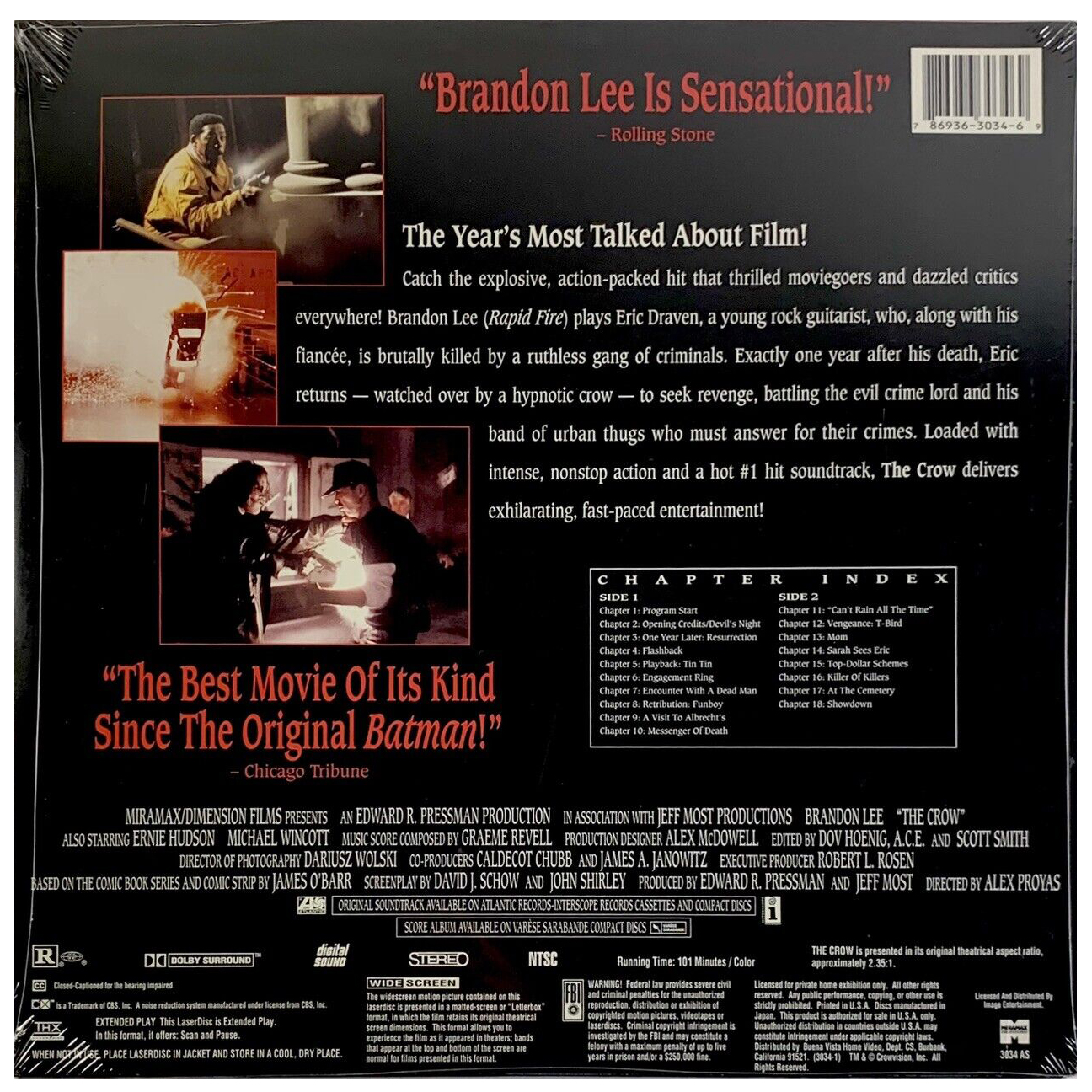 'The Crow' runs 101 minutes contains 18 chapters. It was reissued in 1996 with a new catalog number (12157AS), DTS digital sound, and a 10-minute bonus chapter The History of The Crow.