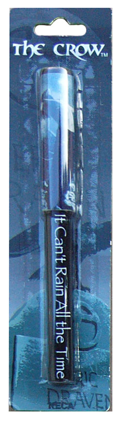 This barrel pen features an image of The Crow on the cap and says "It can't rain all the time" on the main body. Ballpoint with black ink. Imported. MSRP: $2.99. Model # 218828.