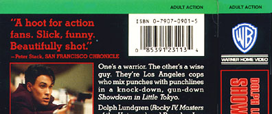 1. USA, Warner Home Video # 12311, 79 minutes, released 1992. First issues had a green classification banner around the top of the back and sides that said "Adult Action". On later issues the banner was removed, and the credits were revised on the back of the box.